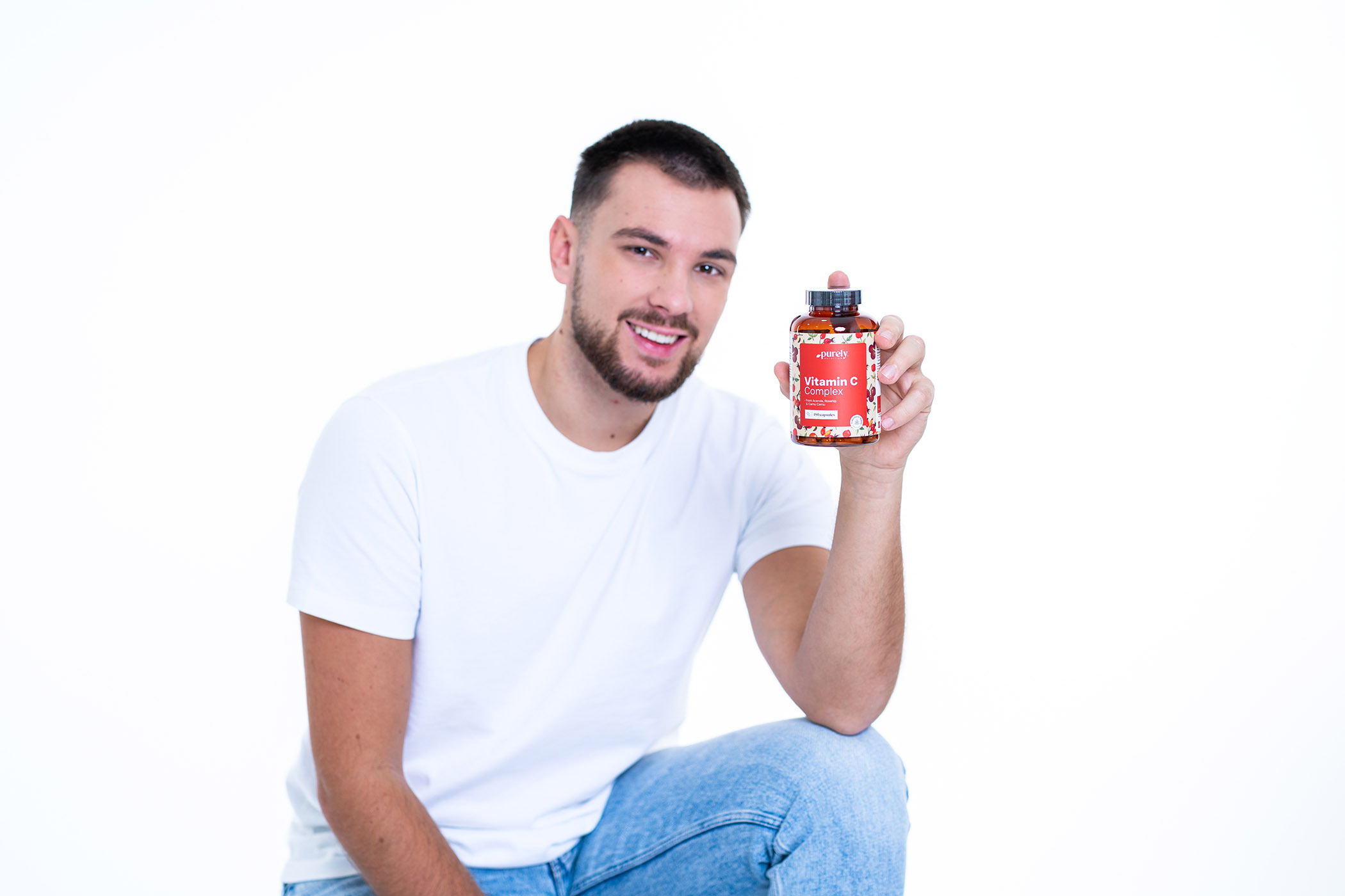 Složení: L-askorban vápenatý, výtažek plodů aceroly 15:1 (Malpighia glabra; 25 % vitamínu C), výtažek plodů camu camu 5:1 (Myrciaria dubia; 30 % vitamínu C), bramborový škrob, výtažek šípků 20:1 (Rosa canina; 45 % vitamínu C), hydroxypropylmethylcelulóza (HPMC; rostlinná kapsle).