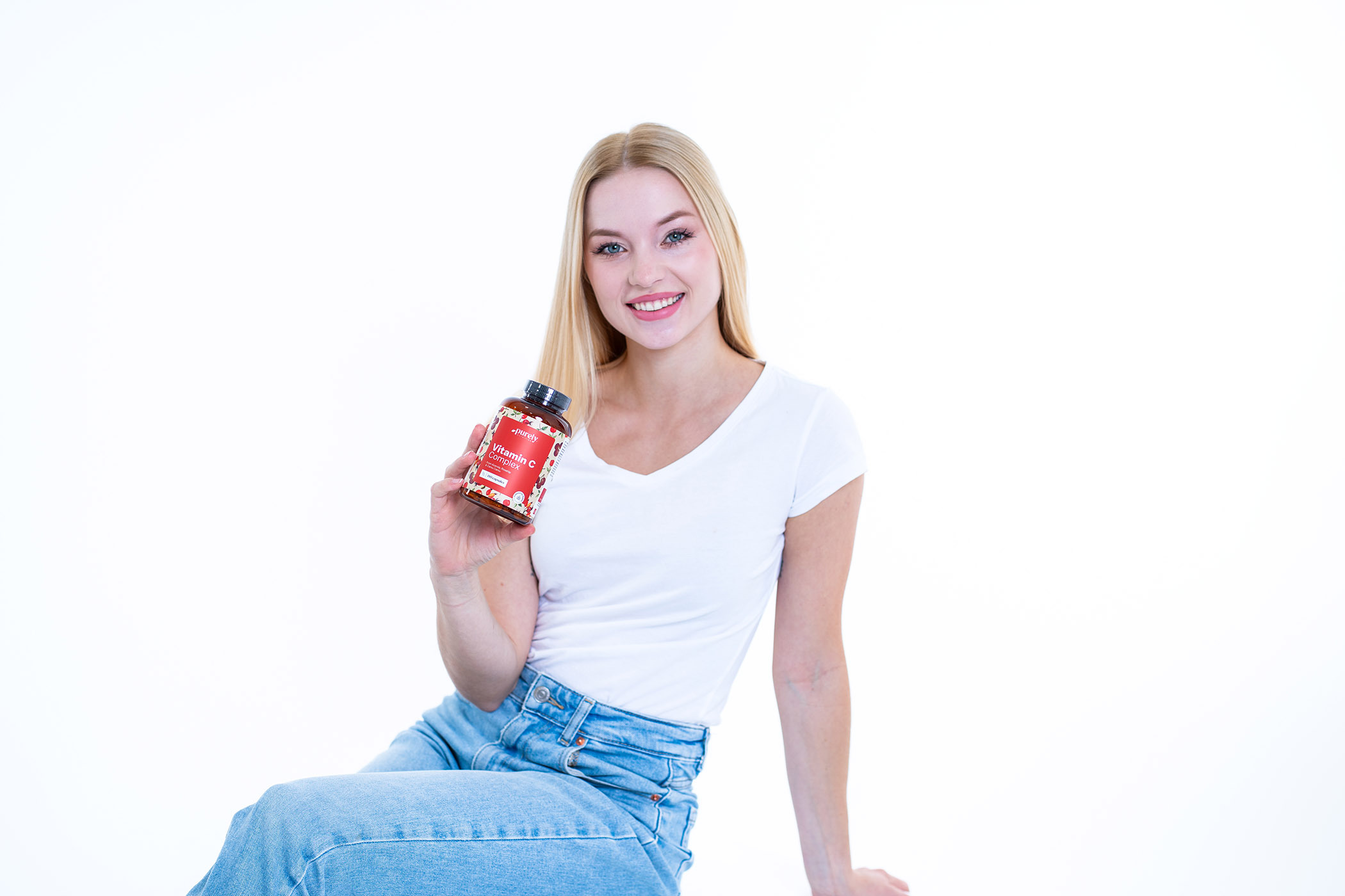 Složení: L-askorban vápenatý, výtažek plodů aceroly 15:1 (Malpighia glabra; 25 % vitamínu C), výtažek plodů camu camu 5:1 (Myrciaria dubia; 30 % vitamínu C), bramborový škrob, výtažek šípků 20:1 (Rosa canina; 45 % vitamínu C), hydroxypropylmethylcelulóza (HPMC; rostlinná kapsle).