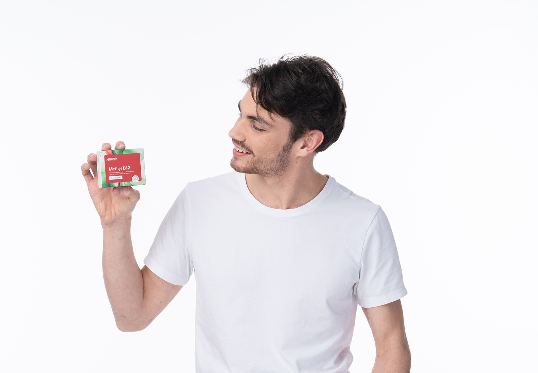Složení: plnidlo: mikrokrystalická celulóza, maltodextrin, hydroxypropylmethylcelulóza (HPMC; rostlinný obal kapsle), protispékavé látky: hořečnaté soli mastných kyselin, methylkobalamin (vitamín B12), barvivo: uhličitan vápenatý.